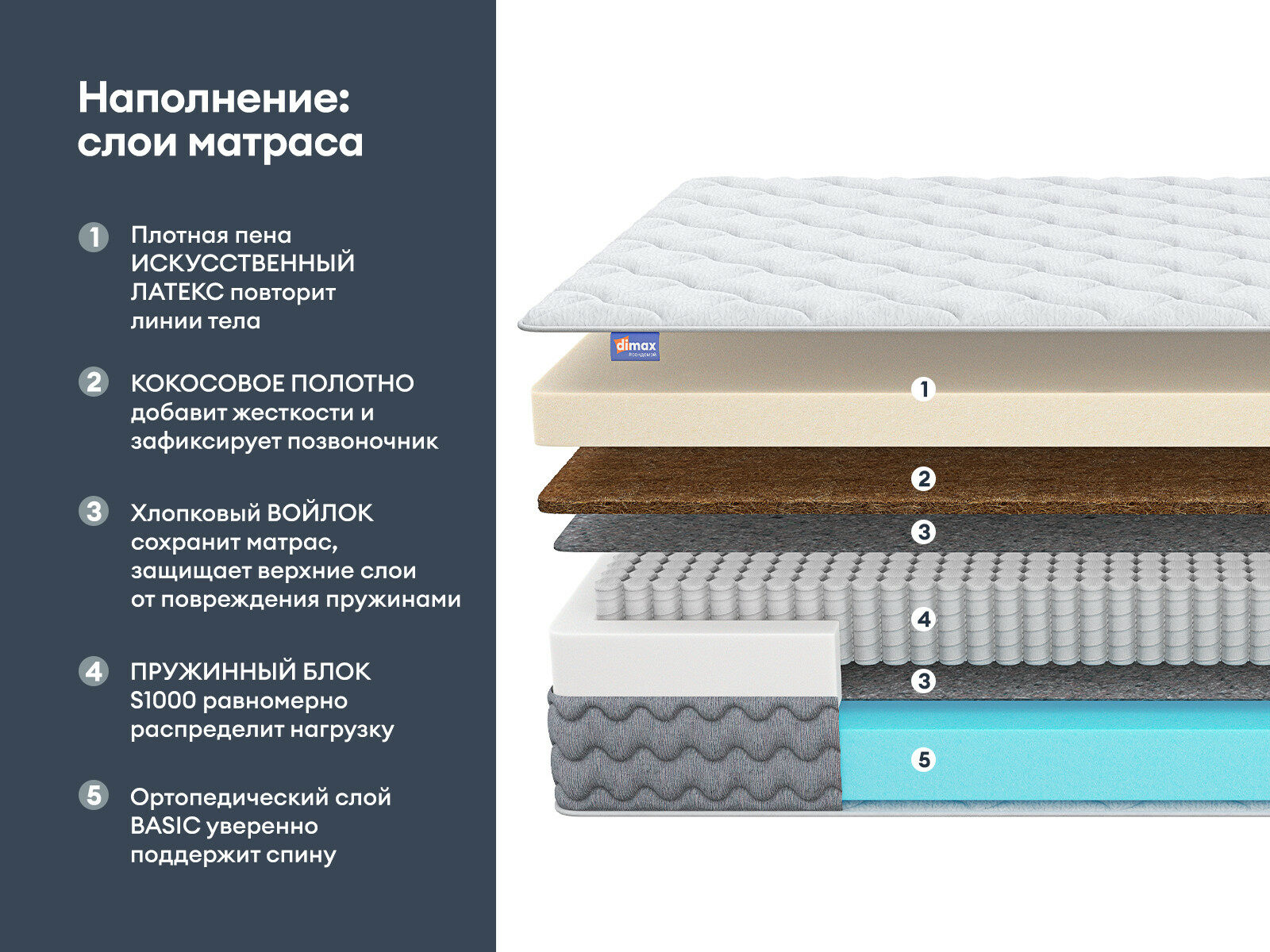 Матрас Димакс Биг Лайт Найт — это высокая пружинная модель с двумя сторонами комфорта. Классический средний уровень жёсткости и увеличенный пружинный блок дают надёжную поддержку и комфорт во время сна. Модель универсальна и подойдёт для удобного отдыха для разных типов фигур и телосложений.