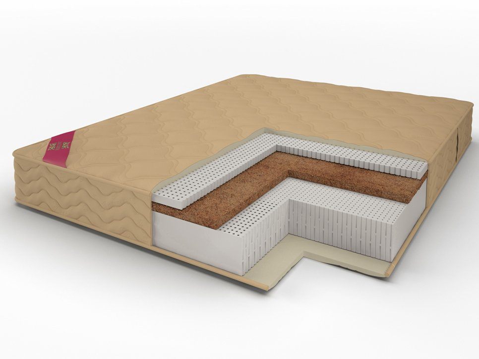 Разносторонний матрас на основе многозональной латексной плиты и кокосового волокна. Полу жесткость с одной стороны придает именно кокосовое волокно которое по своей структуре очень жесткое но в сочетании с латексом его свойства приобретают другой характер. Кокосовое волокно это натуральный, экологически чистый, долговечный природный материал, получаемый из ореха кокосовой пальмы. Является антиаллергенным и бактерицидном материалом. Мягкая сторона из натурального латекса, из-за его способности к высокой эластичности легко подстраивается под форму вашего тела . Это одновременно очень плотный материал, а вследствие своих эластичных свойств, упругий. Комфортный мягкий слой изделия будет препятствовать сдавливанию мягких тканей, обеспечивая свободную циркуляцию крови. Еще один плюс натурального латекса состоит в том, что он не нагревается во сне, а пылевые клещи и другие микроорганизмы не могут выжить в латексе из-за его уникальных органических свойств. Поверхность матраса на основе флекспакета "Dept" с высоко извилистым волокном очень нежная и приятная при соприкосновении с телом также препятствует сдавливанию сосудов и капилляров.