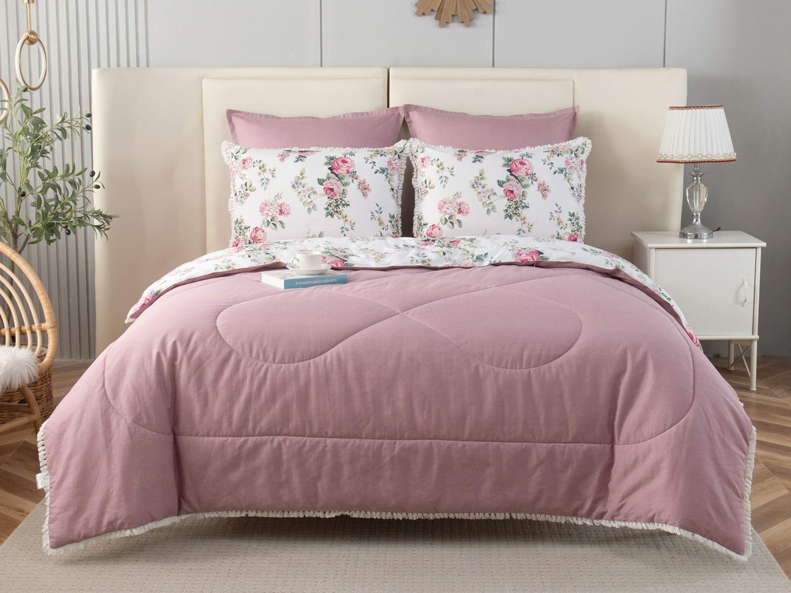 В комплекты комфортеров с одеялом Бернадетт входят наволочки, простыня и легкое всесезонное одеяло. Оцените это современное и очень удобное решение, которое идеально подходит тем, кто не любит возиться с пододеяльниками.