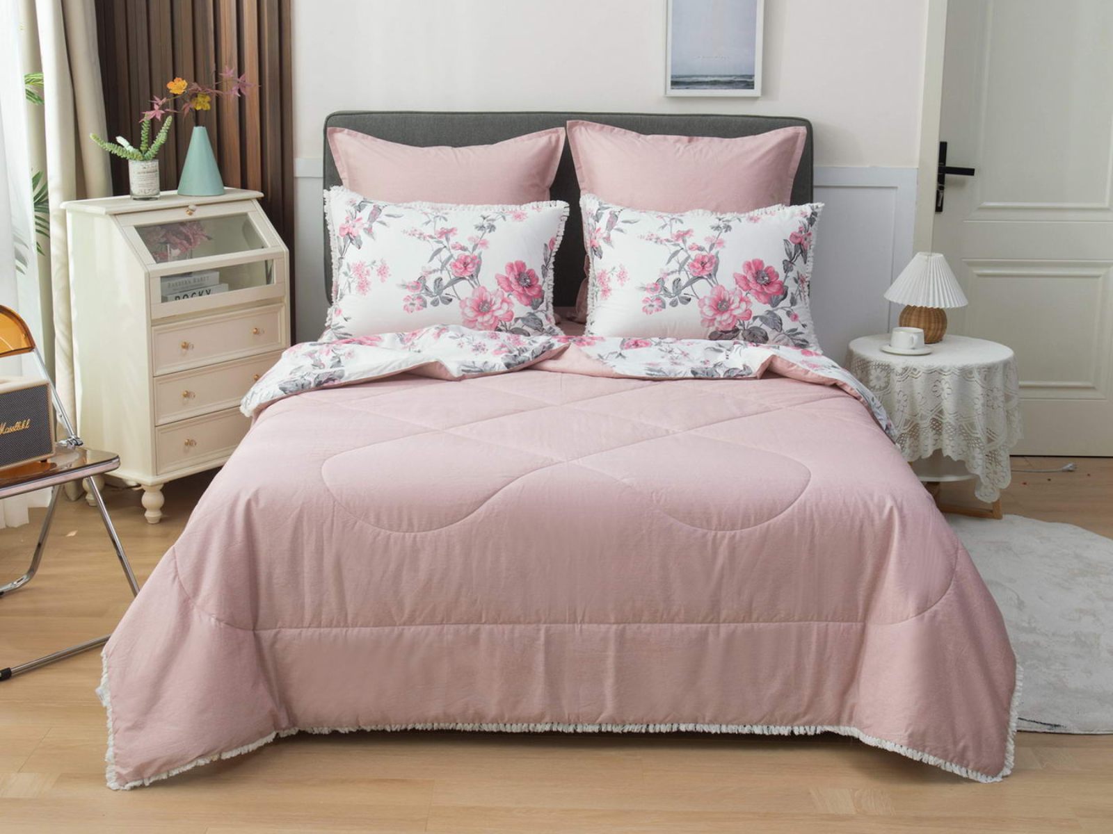 В комплекты комфортеров с одеялом Бернадетт входят наволочки, простыня и легкое всесезонное одеяло. Оцените это современное и очень удобное решение, которое идеально подходит тем, кто не любит возиться с пододеяльниками.