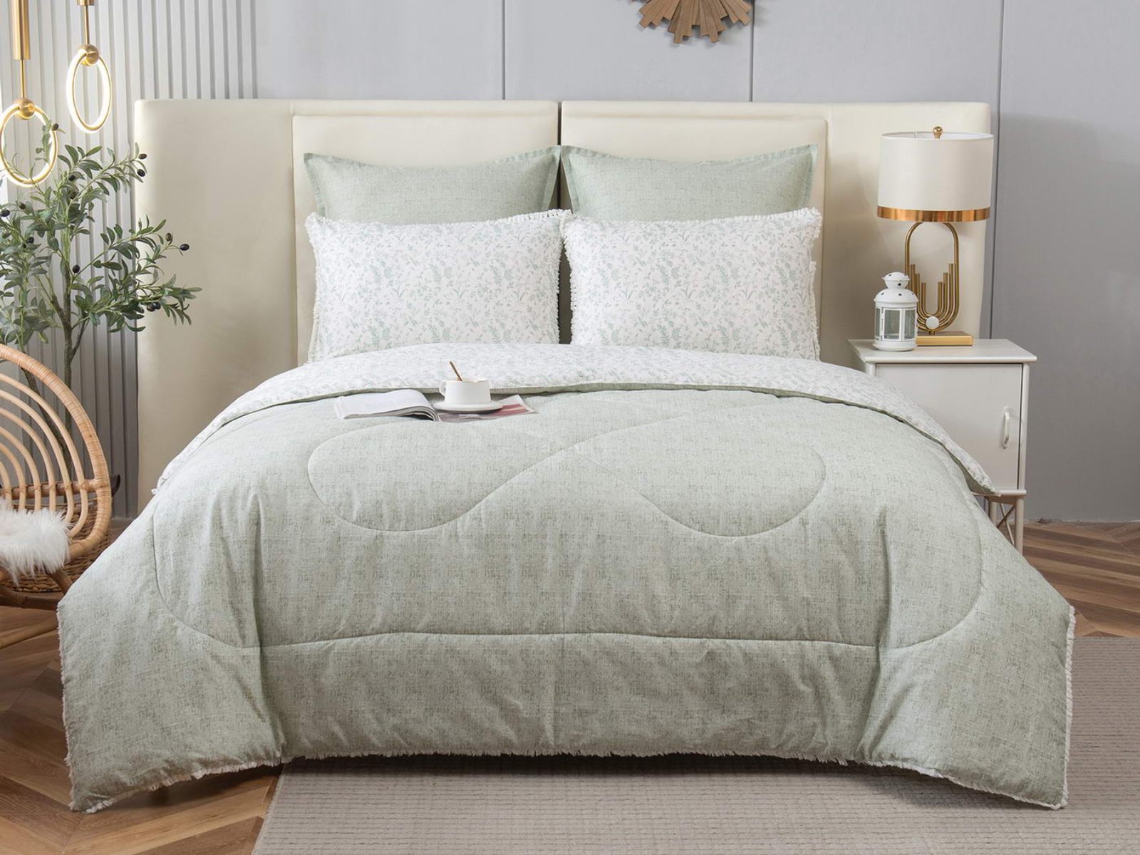 В комплекты комфортеров с одеялом Бернадетт входят наволочки, простыня и легкое всесезонное одеяло. Оцените это современное и очень удобное решение, которое идеально подходит тем, кто не любит возиться с пододеяльниками.