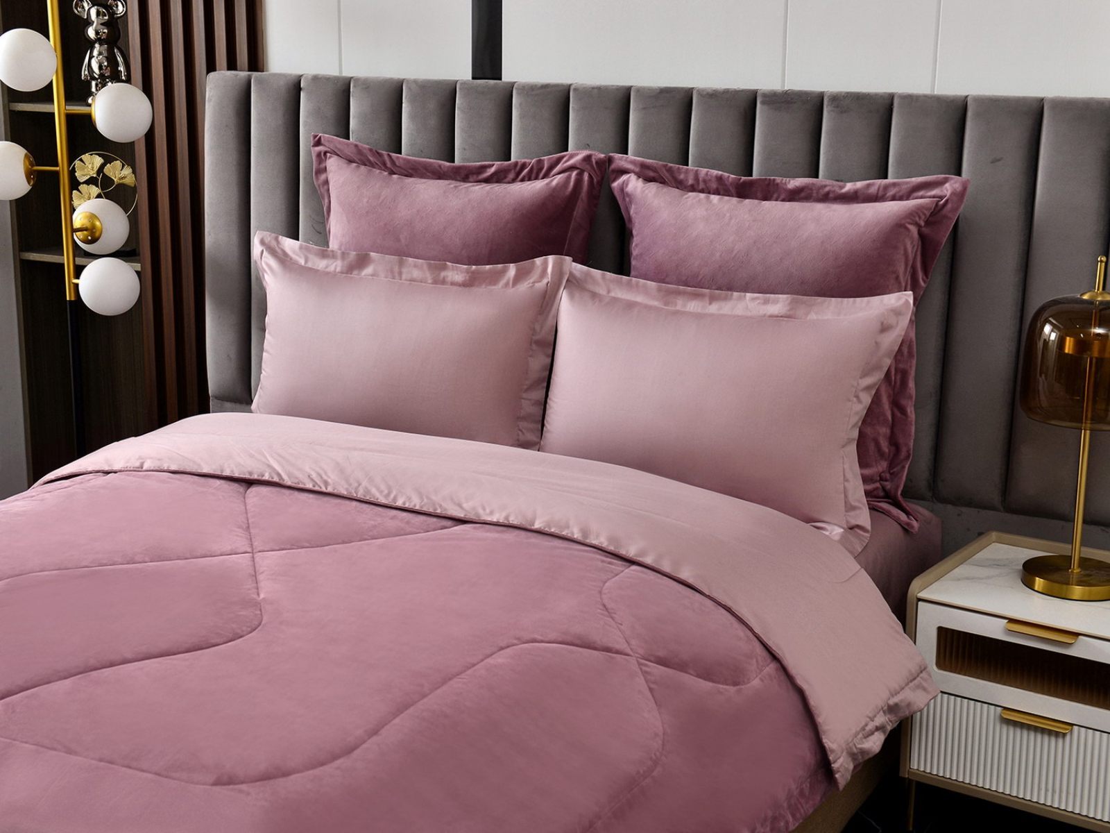 Изготовленный из качественной вискозы и мягкого хлопка трендовых цветов, комплект создаёт приятное ощущение на коже. Его экологичное наполнение из 100% эковолокна обеспечивает гипоаллергенные свойства, подарив вам спокойные и уютные ночи.
