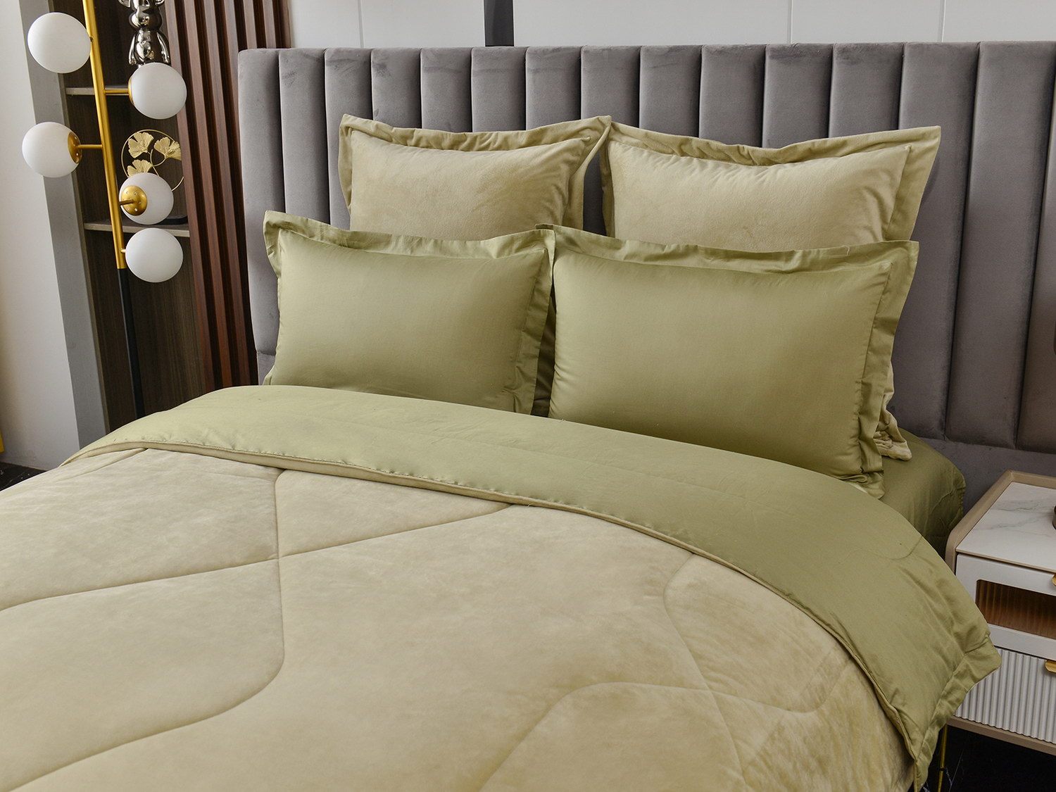 Изготовленный из качественной вискозы и мягкого хлопка трендовых цветов, комплект создаёт приятное ощущение на коже. Его экологичное наполнение из 100% эковолокна обеспечивает гипоаллергенные свойства, подарив вам спокойные и уютные ночи.