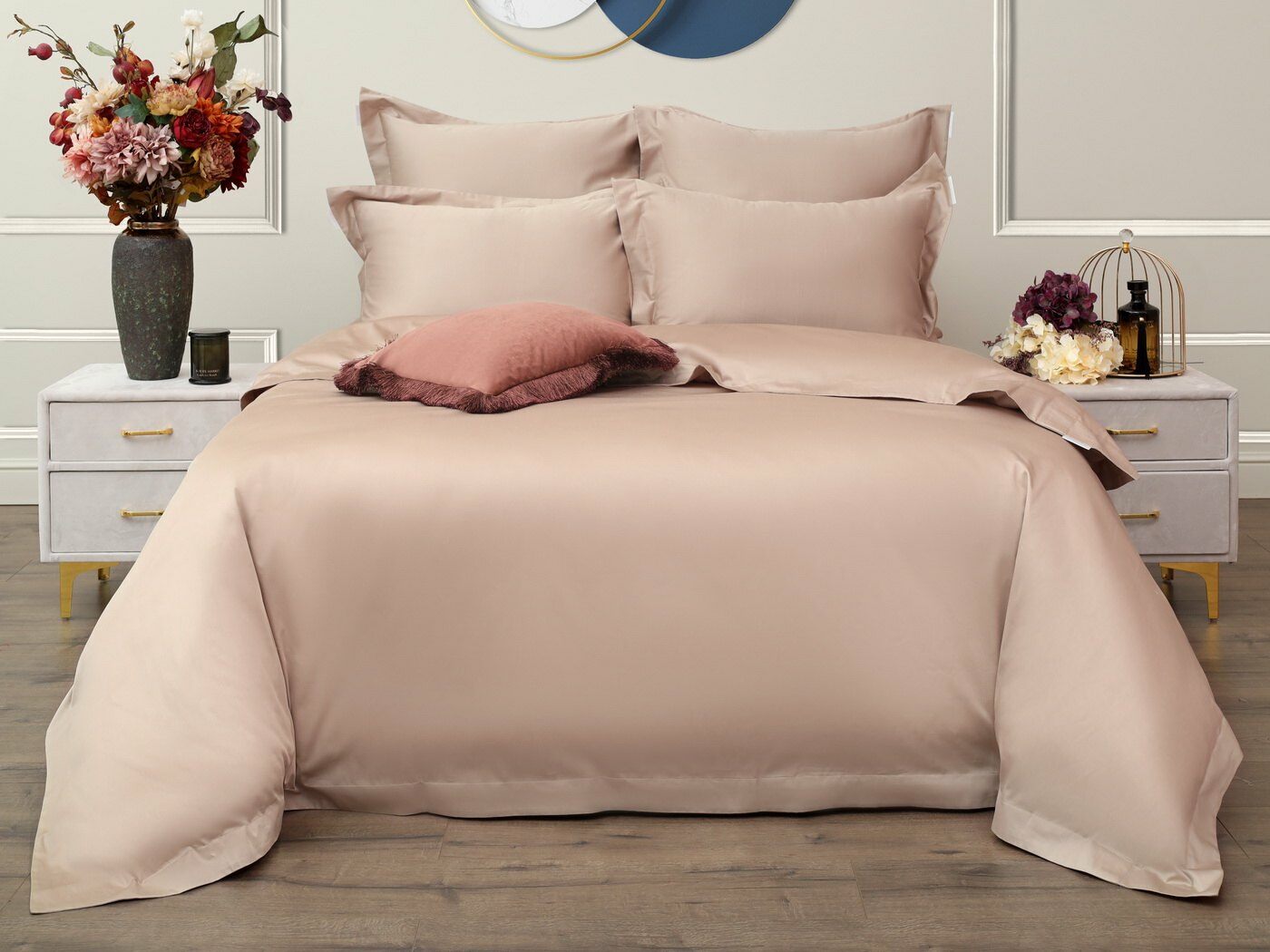 Натуральный состав из 100%-го хлопка обеспечивает гипоаллергенные свойства материала, он охлаждает в жаркую погоду и согревает в холодное время года. Мако-сатин плотностью 300ТС- является тканью класса люкс.