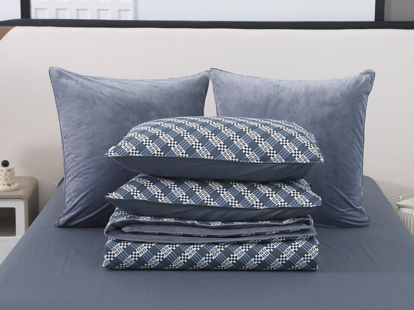 Новая коллекция комплектов «Роберто» с одеялом из однотонного велюра и принтованного сатина.