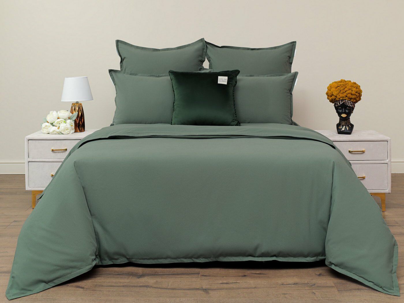 Белье прекрасно сочетается с любым современным интерьером спальни, обеспечивая Вам качественный и спокойный отдых ночью.
