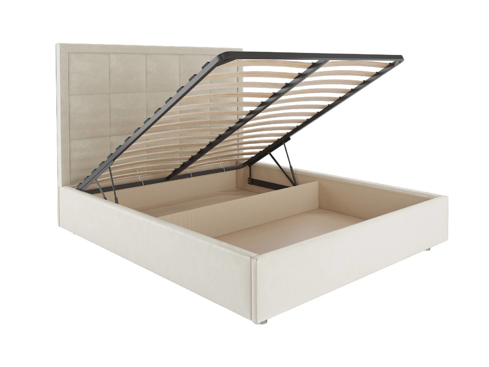 В комплектации с подъемным механизмом кровать имеет вместительный бельевой короб с двумя отделениями.