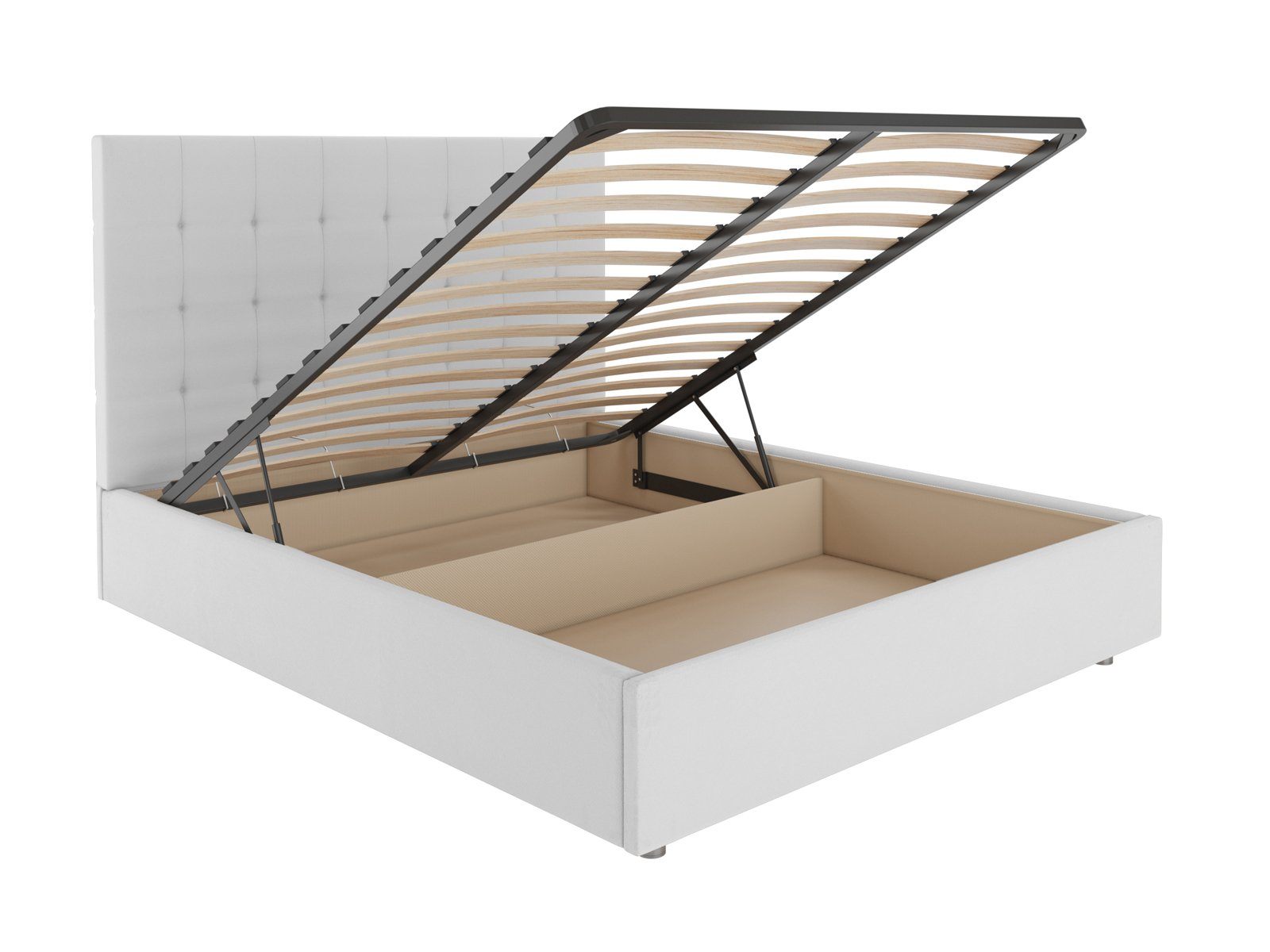 В комплектации с подъемным механизмом кровать имеет вместительный бельевой короб с двумя отделениями.