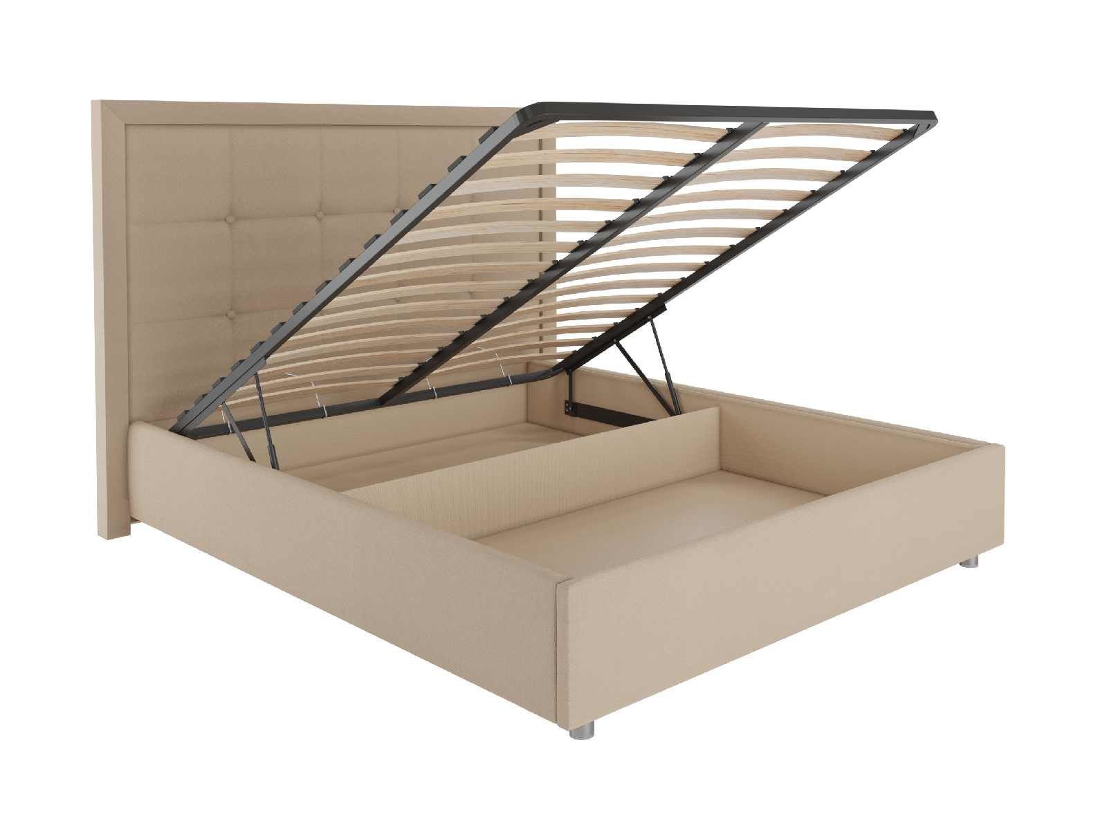 В комплектации с подъемным механизмом кровать имеет вместительный бельевой короб с двумя отделениями.