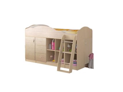 Кровать-чердак Дюймовочка-5.4 представляет собой комбинированный комплекс для детей с компактной системой хранения. Полноценные рабочий стол, просторное спальное место подойдет и для ребенка и подростка.