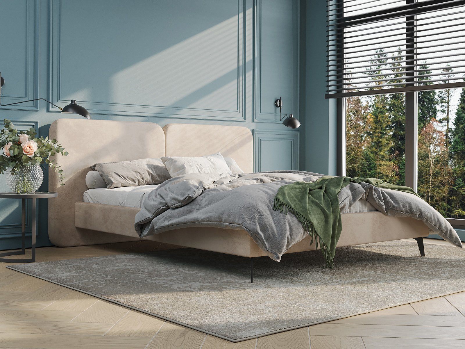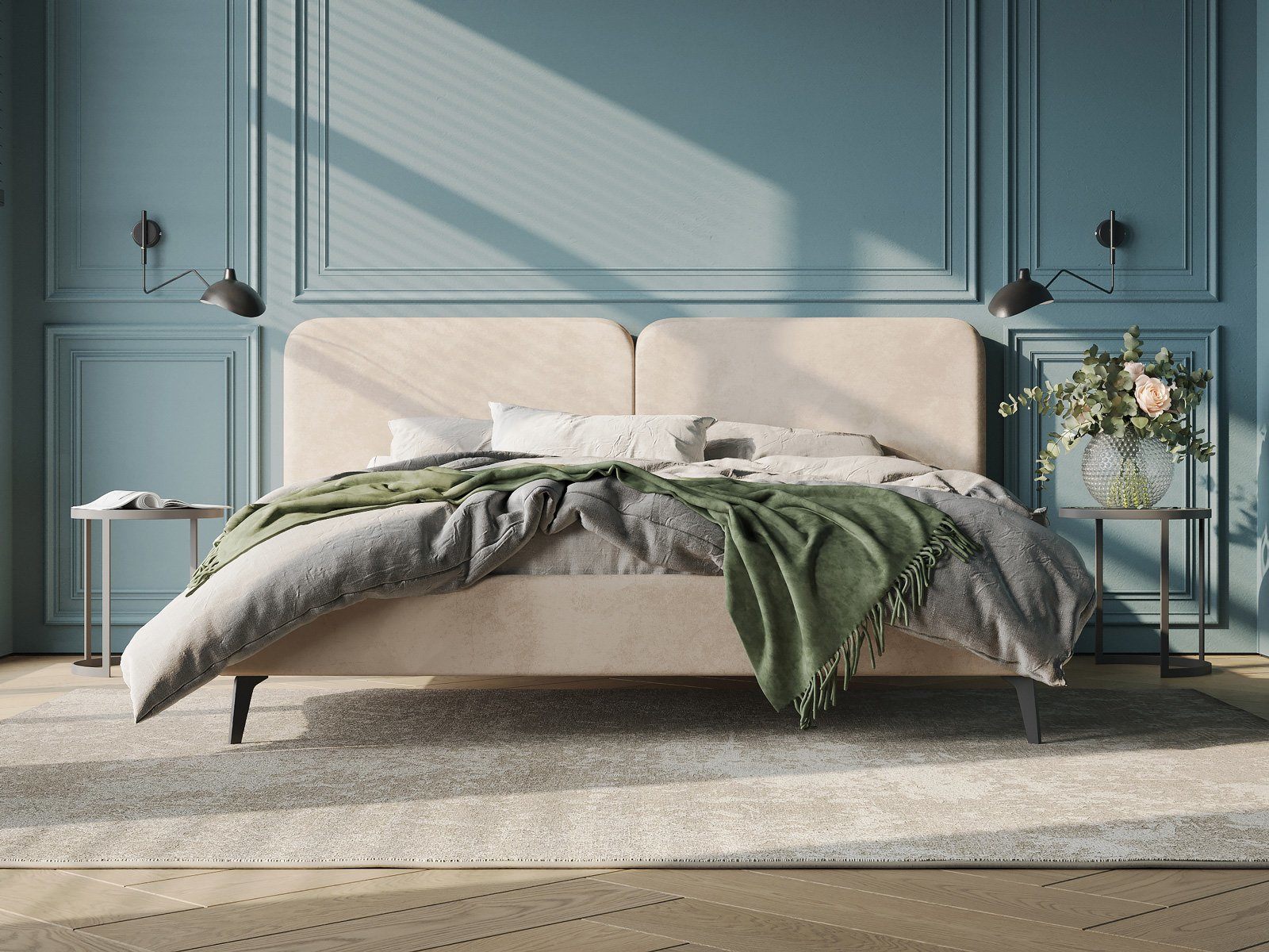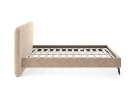 Дизайн кровати удачно подойдет для интерьеров в современном, стиле mid-century модерн. Закругленные углы, узкие царги, металлические опоры черного цвета выделяют Brooklyn из многообразия интерьерных моделей и делают ее востребованной для дизайнерских интерьеров. Изголовье выполнено в виде двух мягких подушек, они крепятся друг к другу с помощью прочного клинового соединения. Задняя часть спинки изготавливается в основной ткани - кровать можно установить в центре комнаты. Узкие царги и изящные металлические опоры, делают кровать легкой и лаконичной. Прочность кровати достигается за счет металлического каркаса по периметру. Модель укомплектована ортопедическим основанием. Расстояние до царг способствует легкой уборке под кроватью, в том числе роботом – пылесосом.