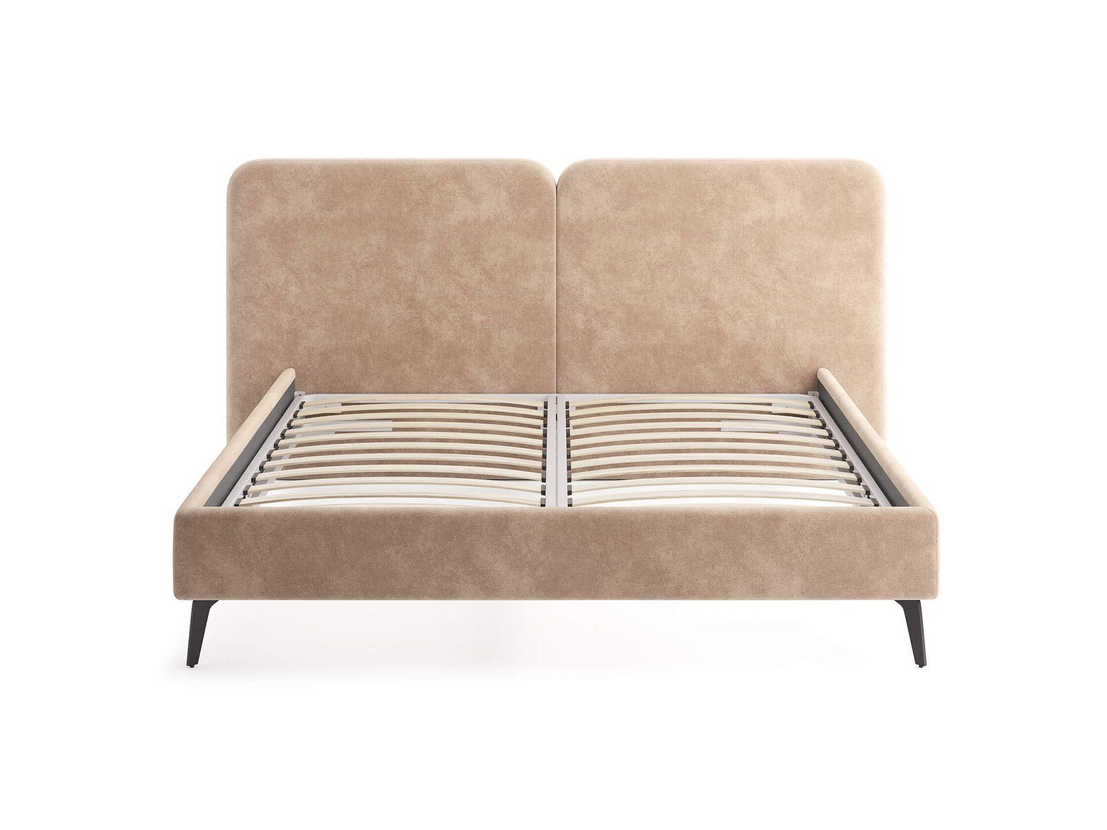 Кровать комплектуется металлическим основанием (без опор), которое имеет 13 рядов встроенных березовых ламелий на каждое спальное место, обеспечивая равномерное распределение нагрузки.