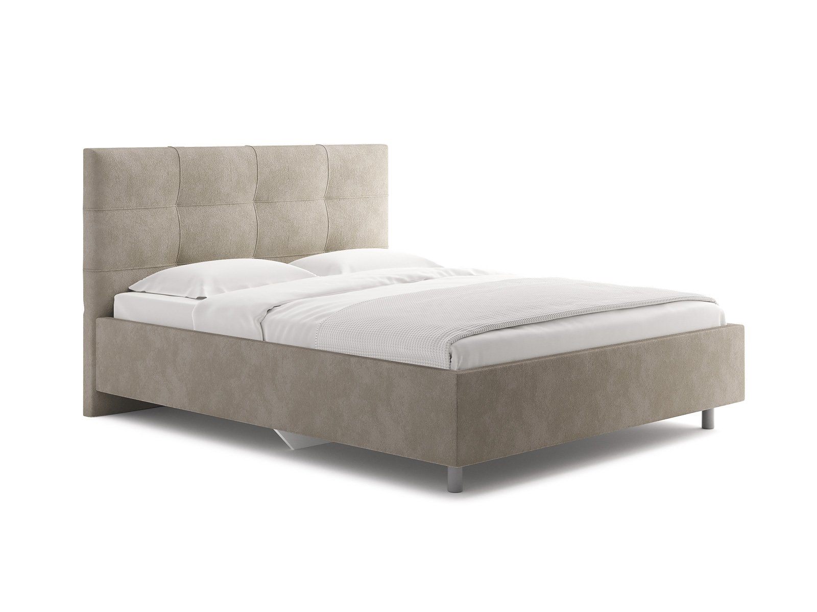 Современная кровать с эффектным декоративным кантом. Модель изготовлена из ДСП. При необходимости кровать может быть укомплектована подъемным механизмом с бельевым ящиком или трансформируемым основанием Aquarius (размером 160-200).