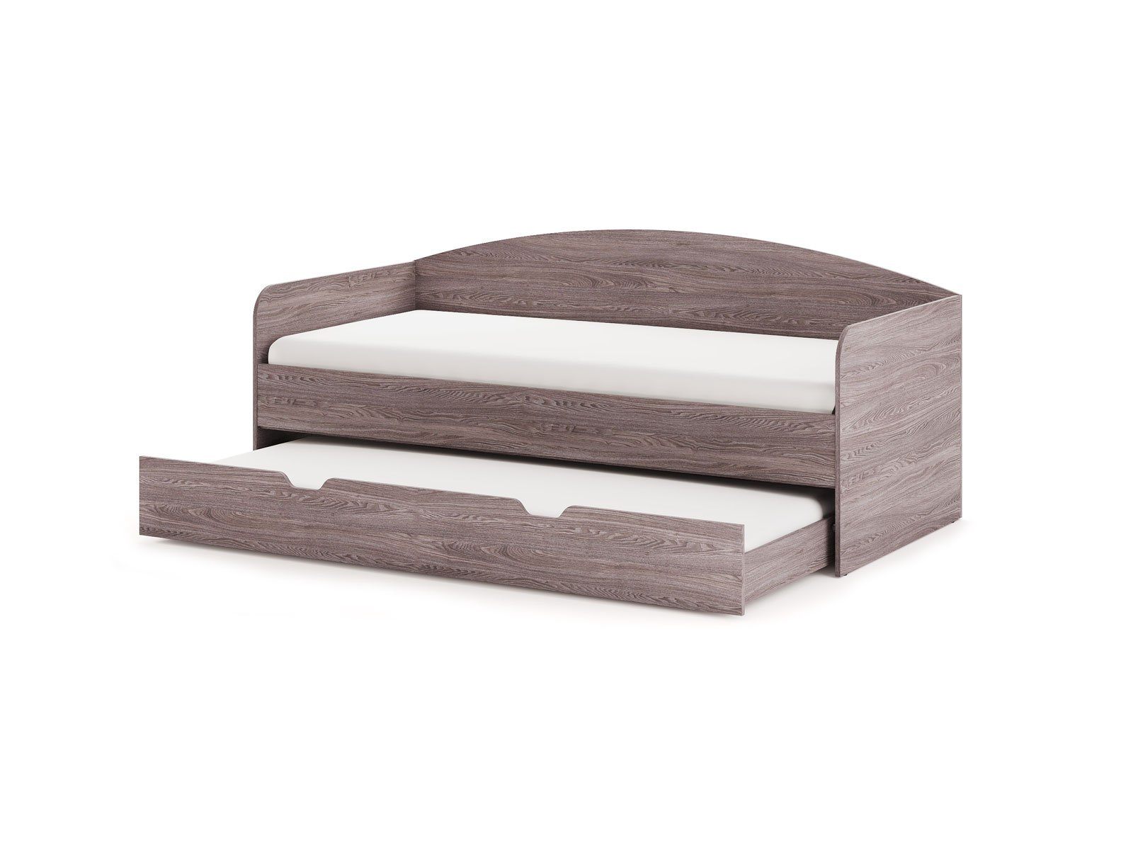 Кровать из ЛДСП с дополнительным выдвижным спальным местом. Выдвижная часть модели может использоваться в качестве дополнительного спального места или вместительного бельевого ящика. Модуль выдвигается с помощью роликов. Возможность полного выдвижения способствует легкой уборке под кроватью. Варианты исполнения: доступна в пяти цветах ЛДСП (белый, графитовый, ясень ориноко, ясмунд и ясень анкор)
