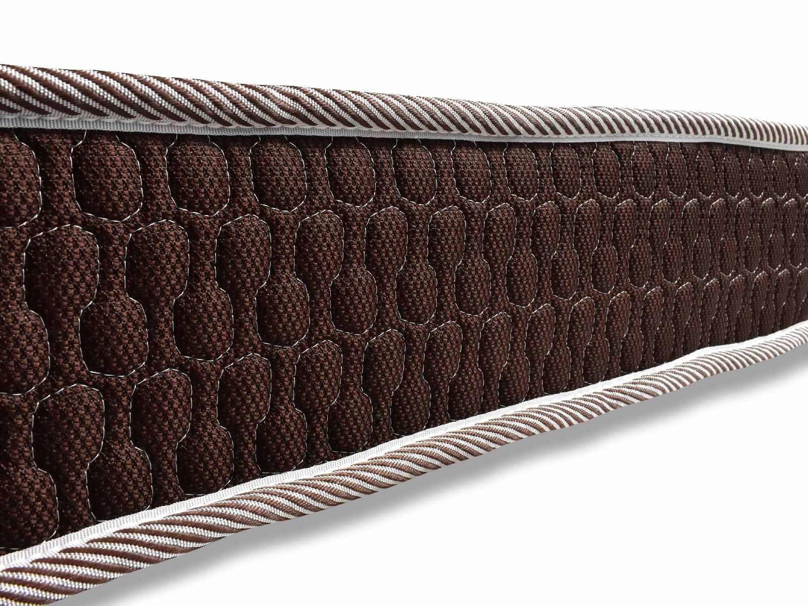Чехол матраса выполнен из двух видов ткани различных оттенков. Боковина шьётся из тёмной мебельной рогожки, а спальные поверхности из светлого трикотажа с добавлением льна в состав. Поскольку лён – полностью натуральное волокно, то это позволяет материалу хорошо вентилироваться и впитывать влагу. Изысканный рисунок и стильный внешний вид делают матрас оригинальным дополнением любого интерьера.