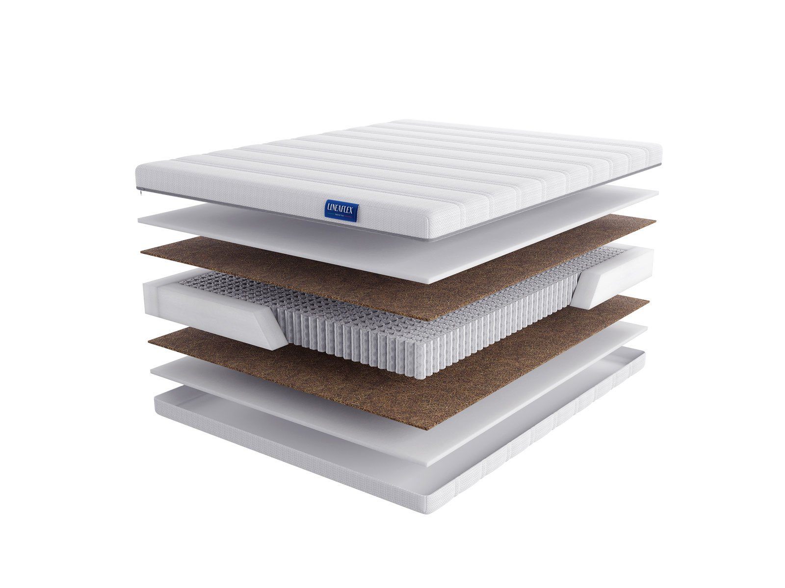 Ergoflex – это фирменная ортопедическая пена, отличающаяся хорошей плотностью, анатомическими и ортопедическими характеристиками комфорта. Койра – жёсткая плита, которую получаю из кокосового волокна. Материал необходим для правильной и естественной поддержки спины.