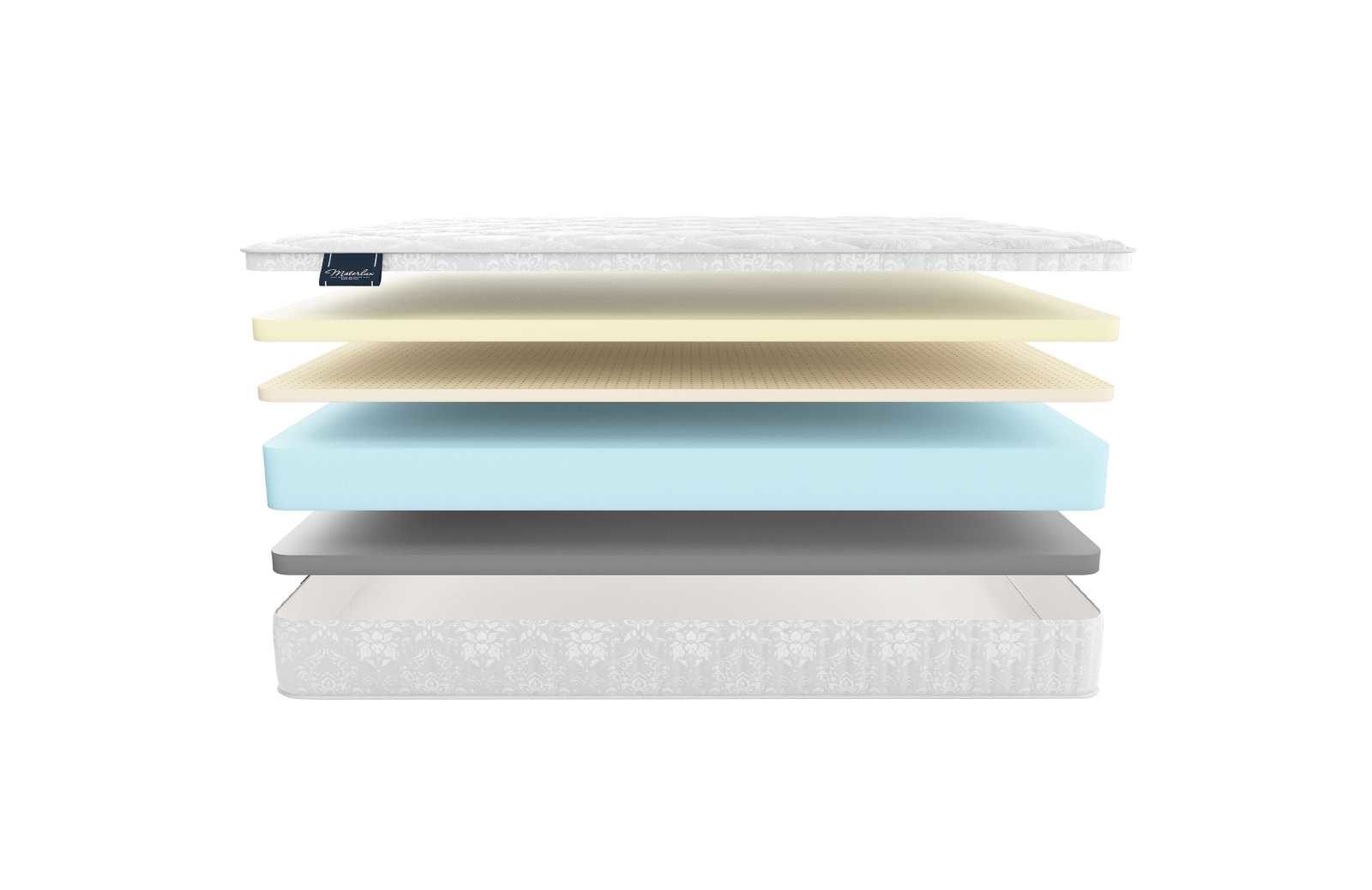 Матрас имеет четырёхслойное наполнение, где каждая плита – это отдельная разновидность материала.