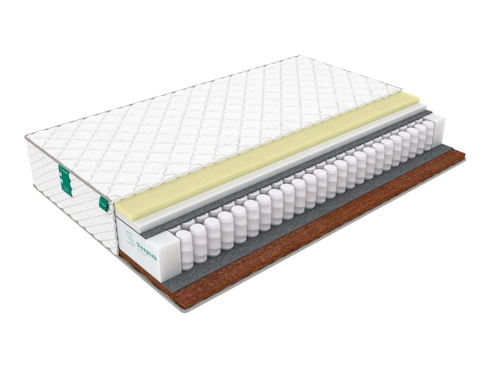 Ортопедический матрас Premier MemoFoam Cocos с различной жесткостью сторон – мягкая и жесткая. Основой модели является независимый пружинный блок S500. В таком блоке каждая пружина реагирует на прилагаемое усилие по отдельности, что в сумме гарантирует полноценную поддержку позвоночника за счет подстройки под тело спящего человека. Кроме того, такой блок работает абсолютно бесшумно.