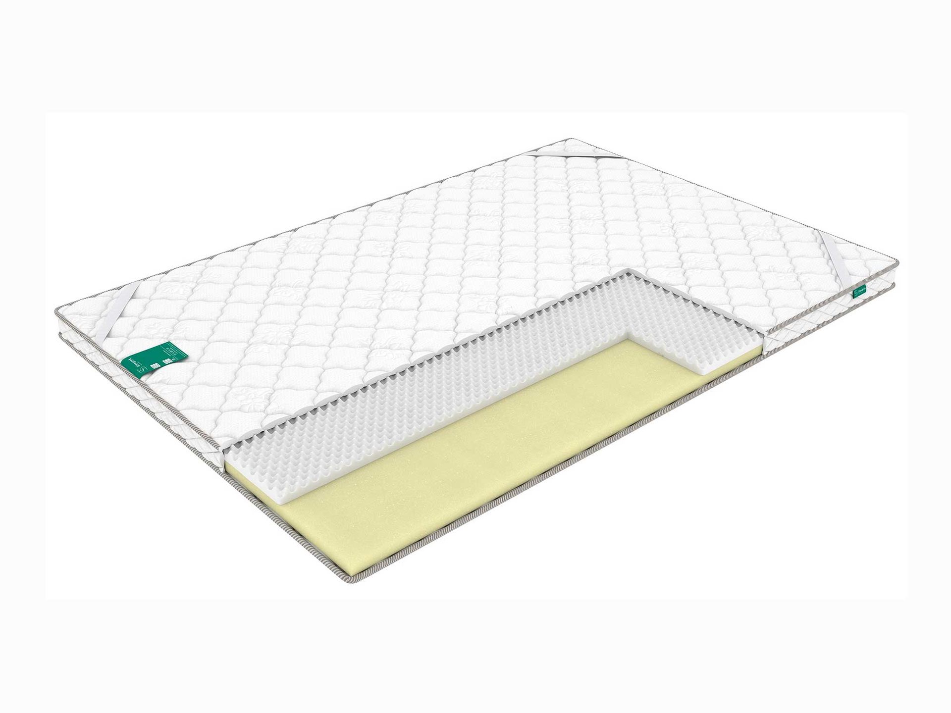 Топпер состоит из двух слоёв пен, однако материалы обладают очень разными свойствами. Так, у одной стороны лежит Мемори, а другой – массажная ортопедическая пена.