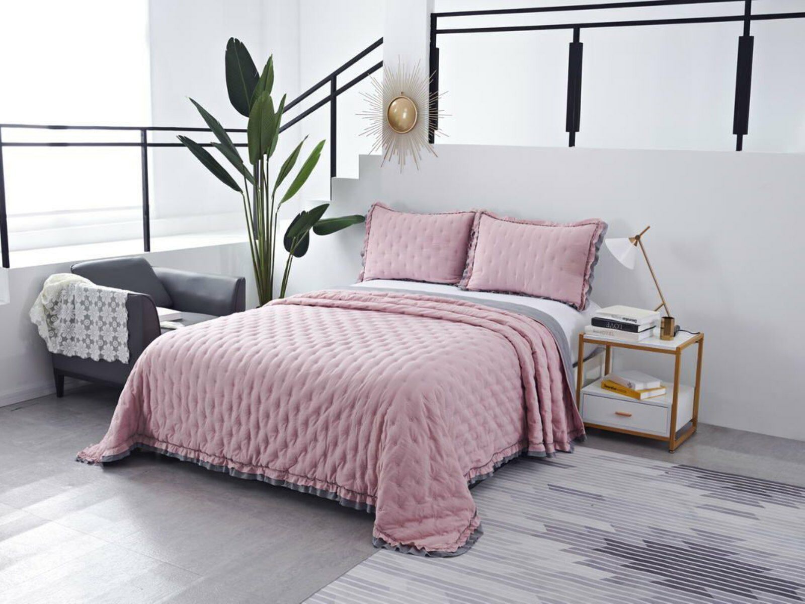 Двусторонние стеганные покрывала Элизабет выполнены из вискозы и хлопка, они легкие и прочные. В комплекте с покрывалом идут две наволочки, вы можете использовать покрывало по назначению, либо в качестве постельного белья. В любом случае, вы будете в восторге от этого комплекта!