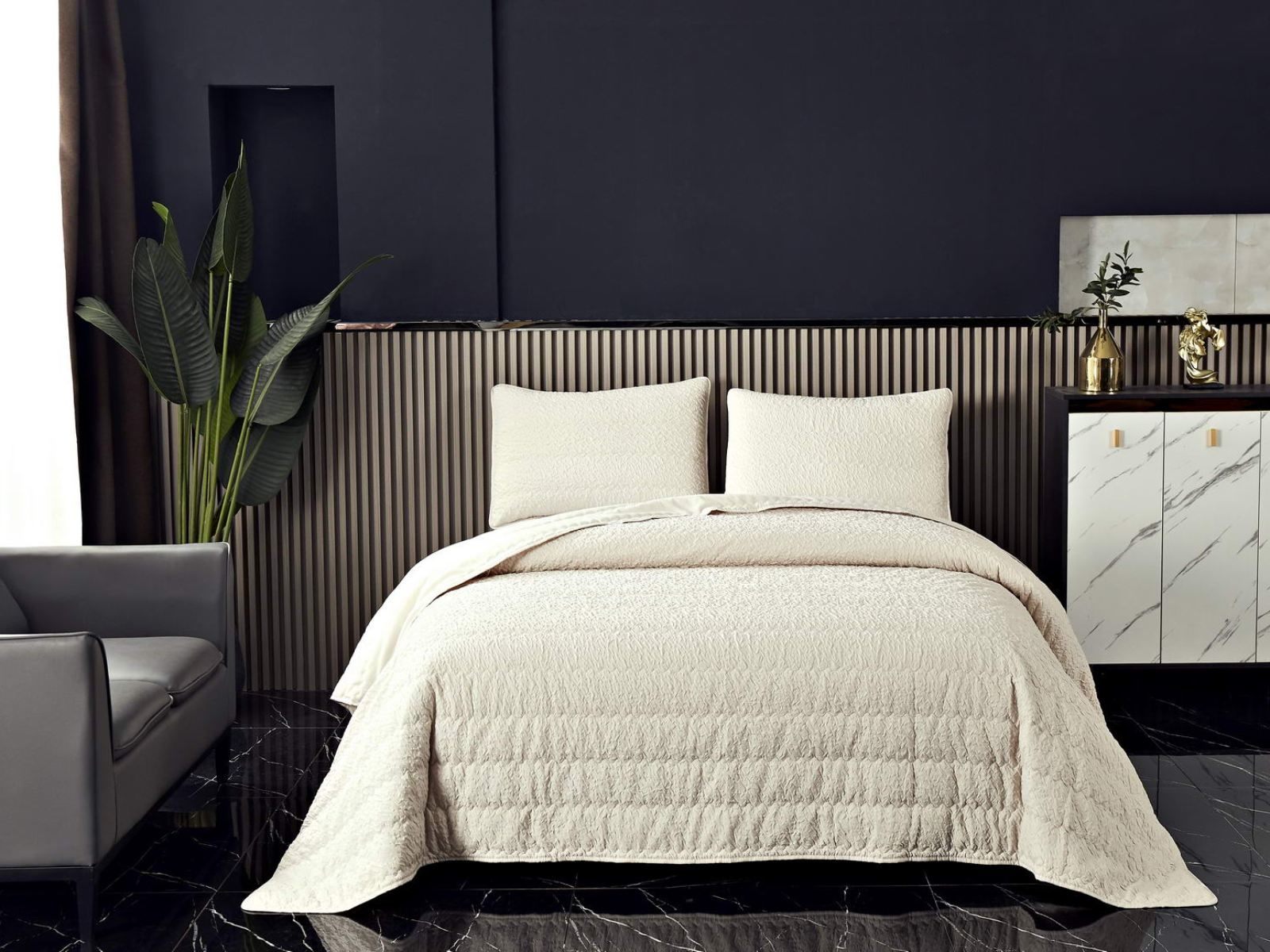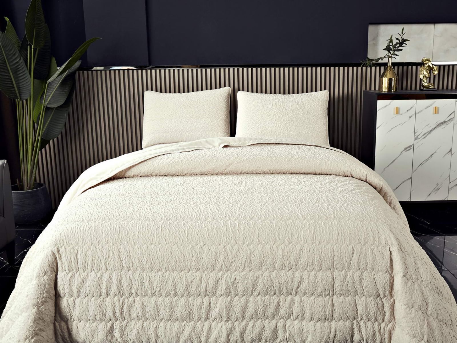 Стеганые покрывала Надин имеют интересную «жатую» структуру, благодаря которой они выглядят живо и оригинально. Они украсят любое помещение.