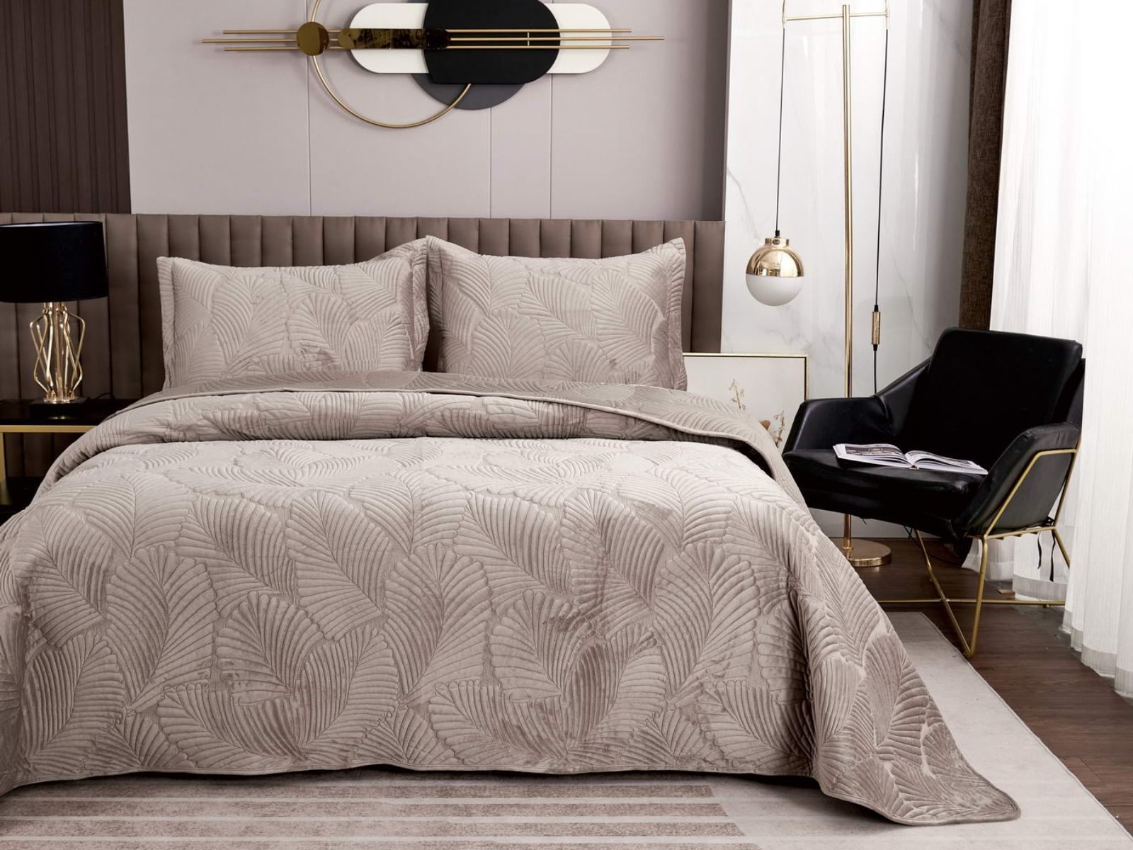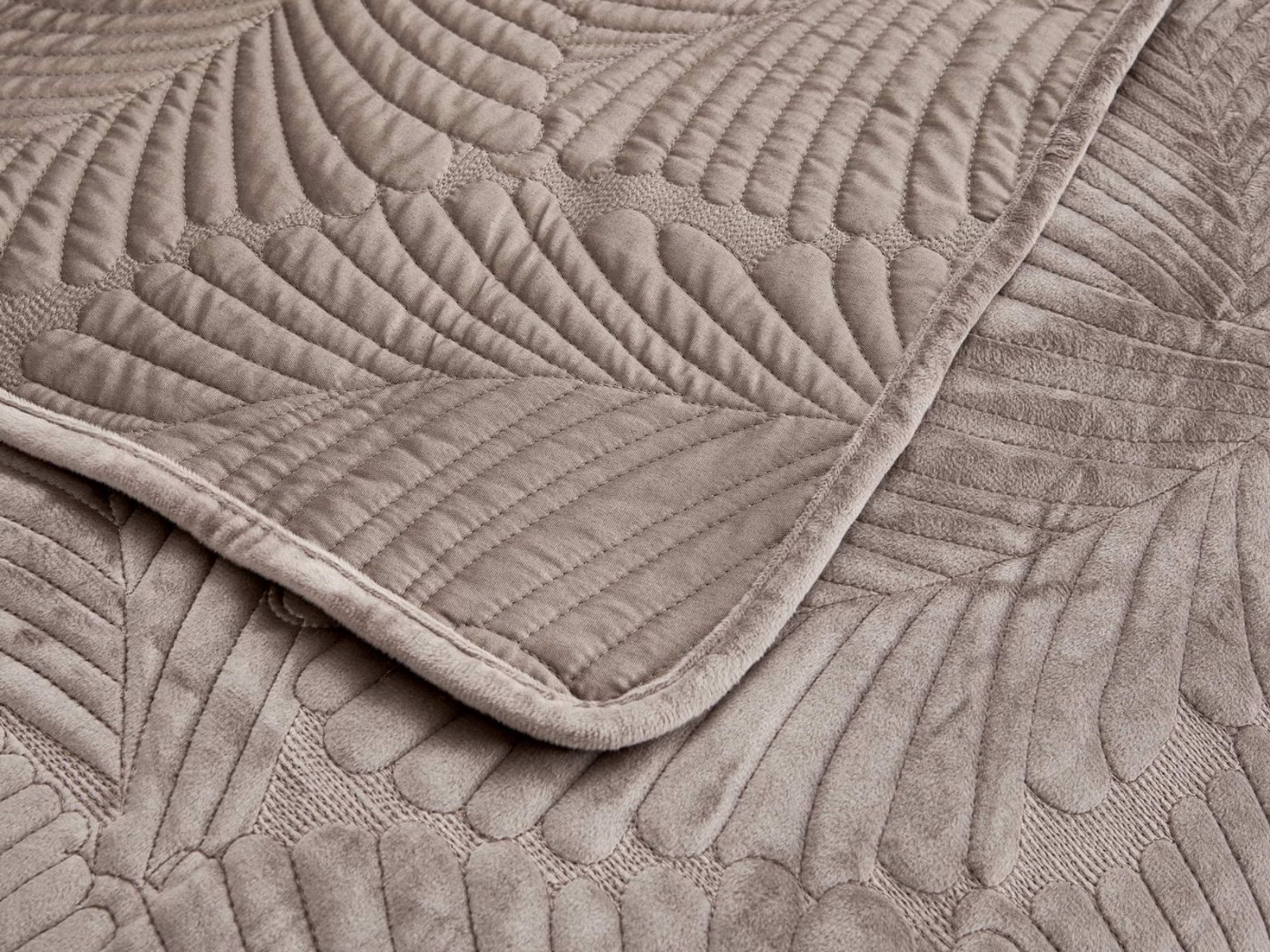 На создание велюрового покрывала Ноэль наших дизайнеров вдохновила ночь в середине лета, когда на раскаленную от жары землю спускается долгожданная прохлада. Роскошная вышивка в виде пальмовых листьев будет напоминать о тени, которую отбрасывают деревья.