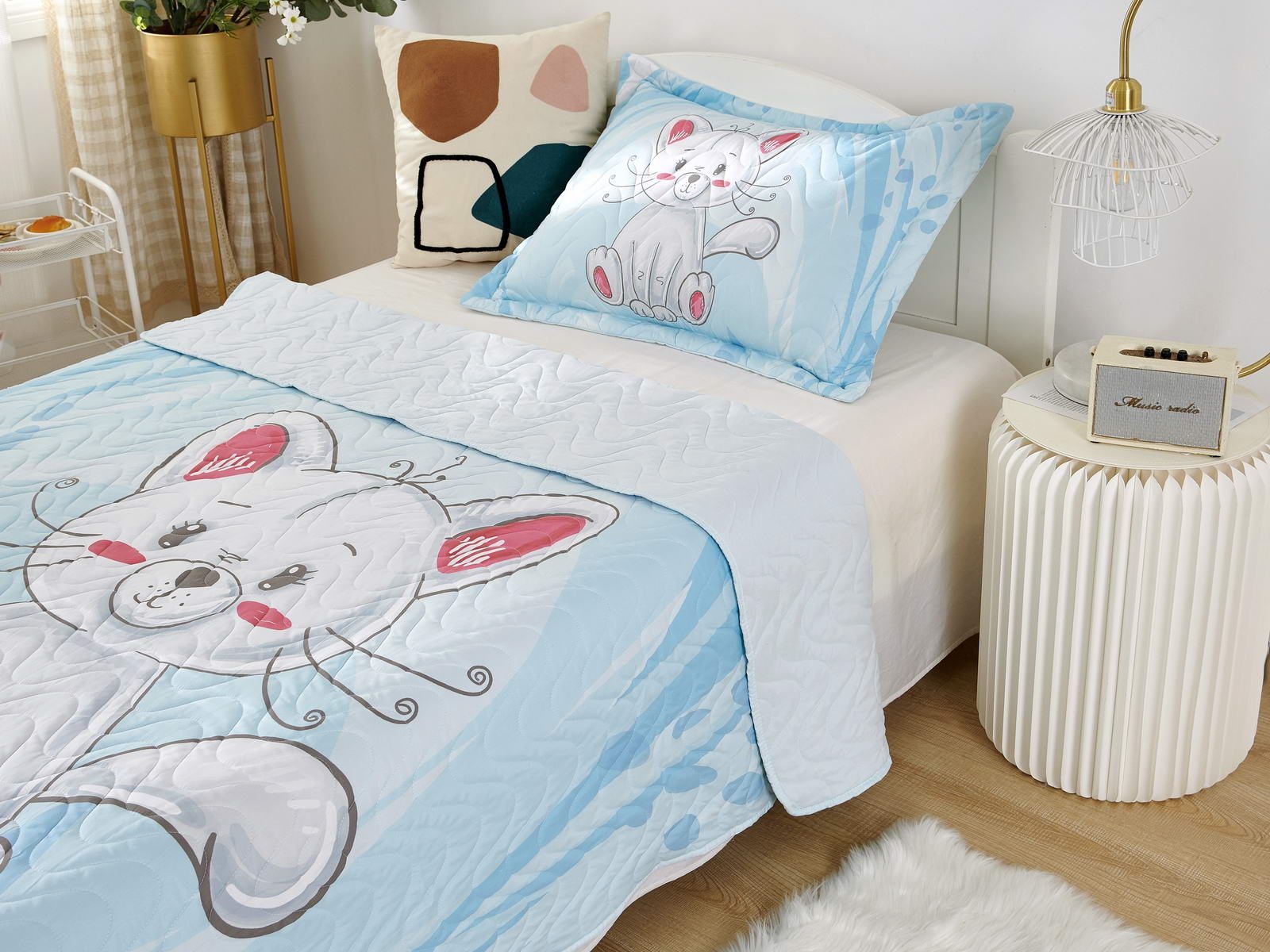 Детские покрывала - это особая забота об уюте и комфорте ребенка. Красивое, стеганое покрывало коллекции «Sunny day» придаст любой детской спальне яркую индивидуальность. Волнистые стежки делают изящные покрывала еще более выразительными и изящными. К ним в комплекте идут наволочки, у них есть интересная особенность, которая непременно понравится ребенку– небольшие ушки.
