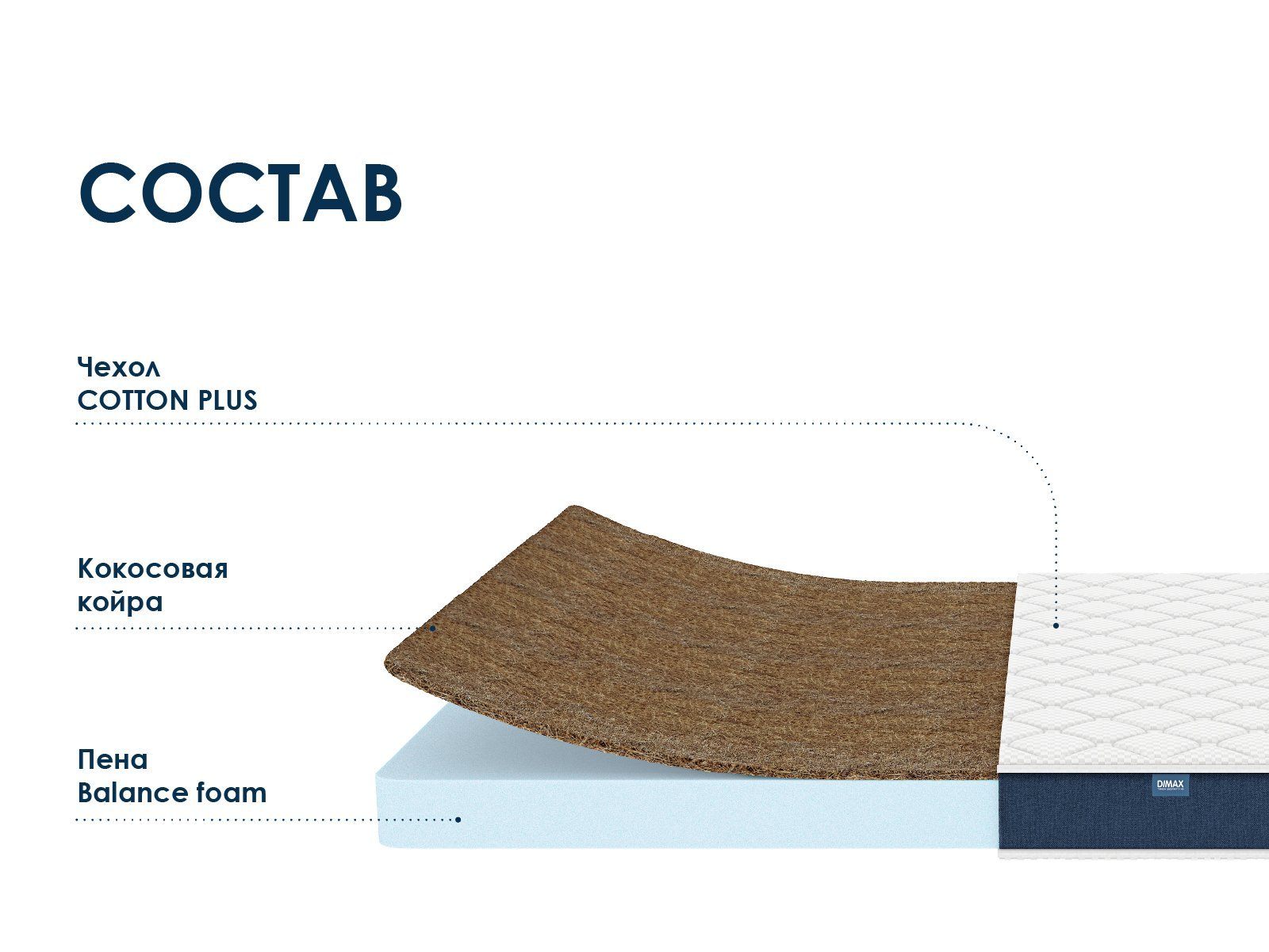 Комбинированные наполнители — ортопедическая пена Balance Foam и кокосовая койра — обеспечивают разные уровни жёсткости и ортопедическую поддержку, что делает матрас универсальным и подходящим для различных предпочтений.