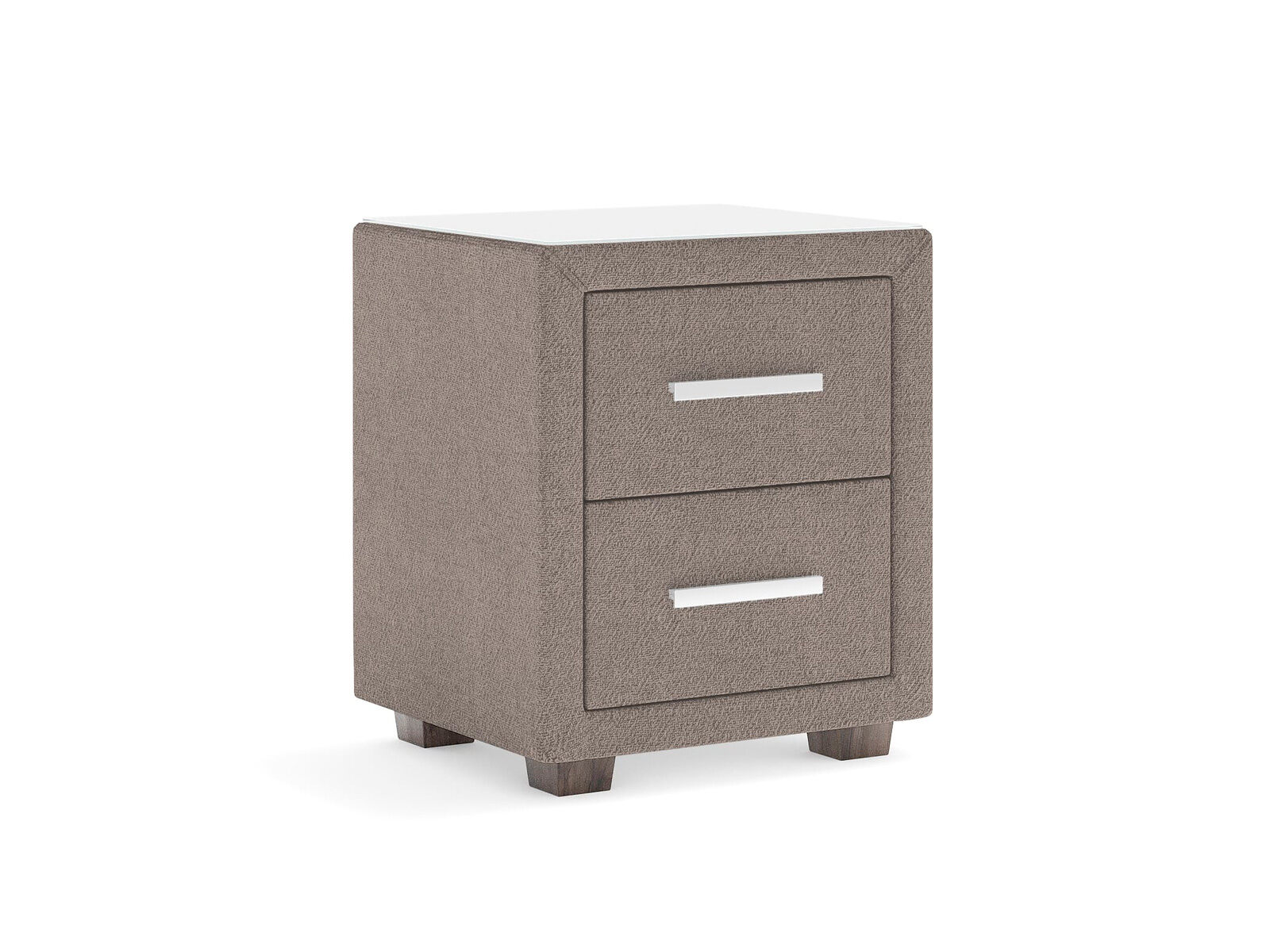 Прикроватная тумба с двумя выдвижными ящиками сочетается с любыми моделями кроватей, органично вписывается в интерьер практически любого стиля. Каркас тумбы выполнен из ДСП. Каркас тумбы и фасад ящиков покрыты обивочным материалом. Для удобства использования и продления срока эксплуатации, рекомендуется использовать стеклянную накладку. Накладка используется в качестве столешницы для тумбы и защищает ее от повреждений и загрязнений. Стеклянная столешница заказывается дополнительно.